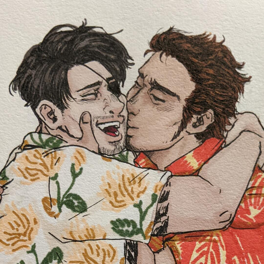 I’ve worked on The Grand digital zine as a writer and currently write Kazumaji on AO3.They’ve had a chokehold on my brain since early 2021 and I hope we can come together to make something adorable and sexy for these weird old guys. ❤️